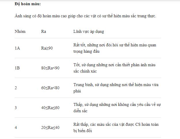 – Thông lượng – quang thông của đèn được cho trong thông số kỹ thuật của mỗi đèn