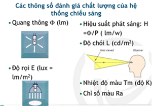 – Độ rọi tính bằng Lux, giá trị xác định theo TCVN-7114-2008